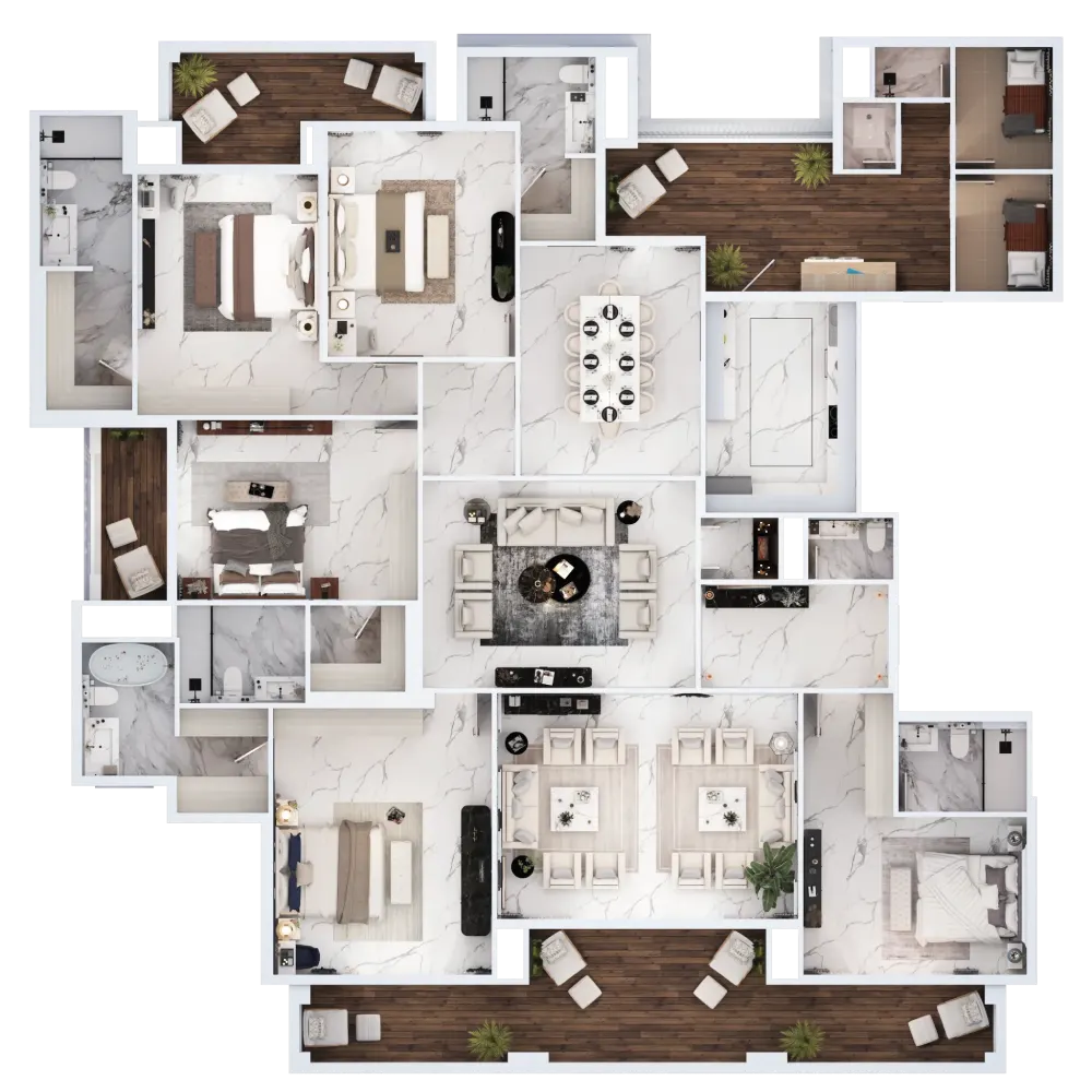 Nimbus Arista Noida offers multiple configurations, each designed to suit different family sizes and lifestyle requirements: 2353 – 2395 sq. ft. Apartments: Ideal for mid-to-large families, offering 3–4 bedrooms with spacious balconies. 3000 sq. ft. Apartments: Perfect for those who prefer additional family areas and guest rooms. 4025 sq. ft. Apartments: Aimed at ultra-luxury seekers, these layouts include extended living zones. 5050 sq. ft. Apartments: Among the largest apartments in Noida, designed for high-net-worth families who want villa-style living in a high-rise setting. The sheer size of these homes gives residents the freedom to design spaces the way they want whether that’s a home theater, a private study, or a playroom for children.