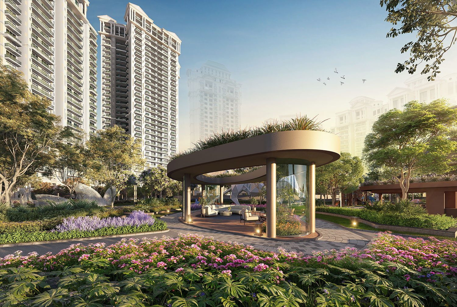 Though several posh towers compete for attention in Noida, the design philosophy of Nimbus Arista makes it different. The developers are targeting low-density living so that privacy and exclusivity are not compromised. Only Two Apartments Per Floor quite an exceptional layout where you have the feel of an individual villa without compromising on the security or services of an apartment complex. 5 Speedy High Lifts per Tower: With less waiting, Convenience is even at its peak. The size of apartments ranges from 2,353 sq. ft. and range all the way to an impressive 5,050 sq. ft., which are among the largest available in Noida. Spacious verandas, open layouts, and large windows mean breezy days and nights. Every small detail of Nimbus Arista Sector 168 Noida has been designed for the families for whom luxury is nothing but quality.